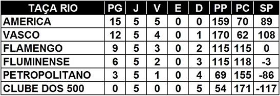 Após a disputa da última rodada da Taça Rio a classificação final ficou assim: