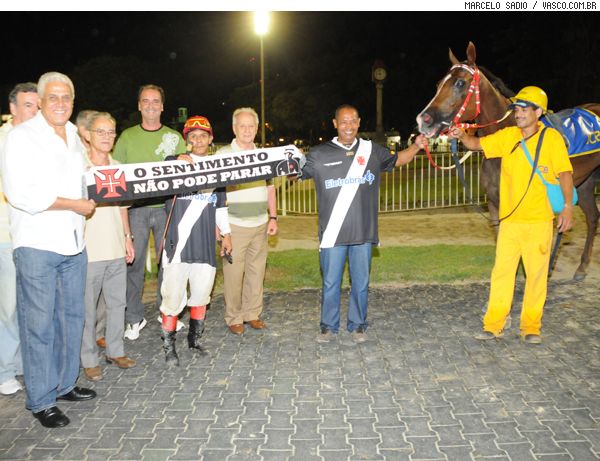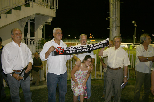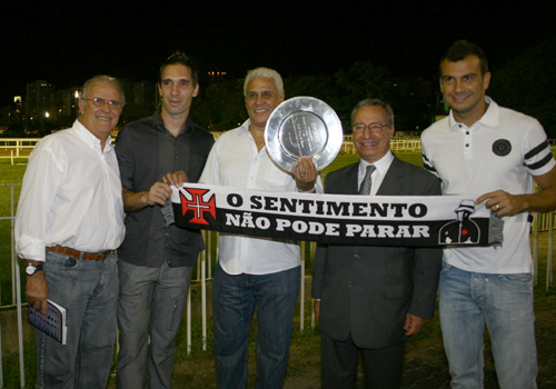 O Presidente Roberto Dinamite, o goleiro Fernando Prass e o zagueiro Fernando compareceram ao Jockey Club nesta segunda-feira (30/11) para prestigiar a homenagem oferecida ao Club de Regatas Vasco da Gama pela conquista do Campeonato Brasileiro - Série B. Os dez páreos realizados na noite foram batizados com nomes referentes ao clube cruzmaltino.