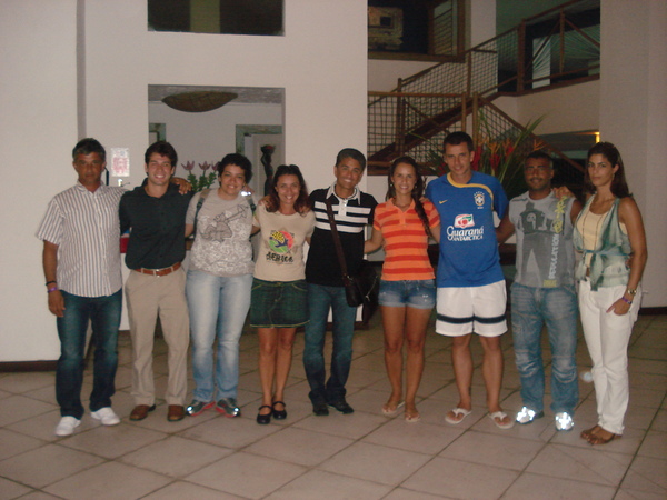 Bebeto e Romário no hotel em Trancoso. O Baixinho levou a esposa Isabela, que está ao seu lado na foto