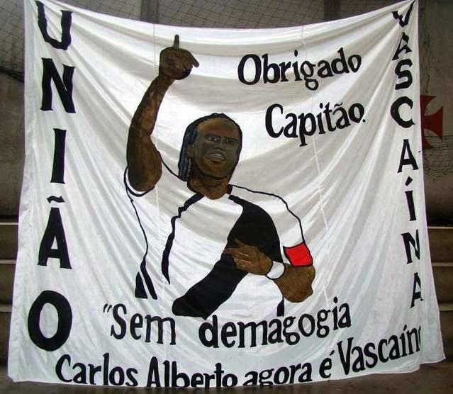 A torcida União Vascaína (www.uniaovascaina.com.br) confeccionou uma bandeira em homenagem ao capitão do time do Vasco, Carlos Alberto. A bandeira estreou nesta 3ª-feira (08/12) no jogo beneficente organizado pelo jogador.