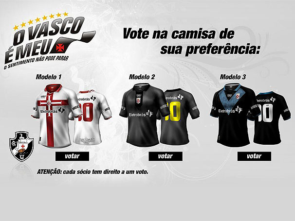 NETVASCO - 28/12/2009 - SEG - 18:00 - JÁ COMEÇOU A VOTAÇÃO PARA ESCOLHA DA CAMISA Nº 3O Vasco lança nesta segunda-feira, 28 de dezembro, uma ação especial para escolher a nova camisa 3 do time em 2010. A iniciativa acontece no site do programa “O Vasco é Meu” e quem participa são os sócios do clube, que poderão escolher entre três modelos que foram desenvolvidos em parceria com a Penalty e a Cavalera.