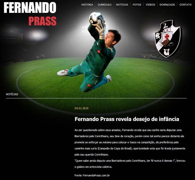 NETVASCO - 05/01/2010 - TER - 13:42 - Hackers invadem site de Fernando Prass e publicam notícia falsaConfira a nota do site do goleiro Fernando Prass: