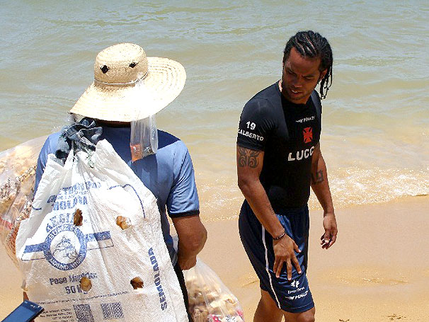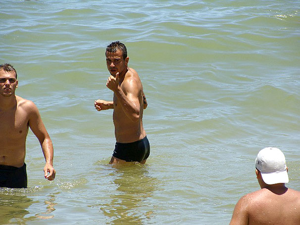 NETVASCO - 09/01/2010 - SÁB - 16:23 - Jogadores aproveitam sábado de sol na Praia da Costa, em Vila VelhaCarlos Alberto e outros jogadores do Vasco aproveitaram o sábado de sol para nadar na Praia da Costa, que fica em frente ao hotel onde a delegação cruzmaltina está hospedada, em Vila Velha, no Espírito Santo.