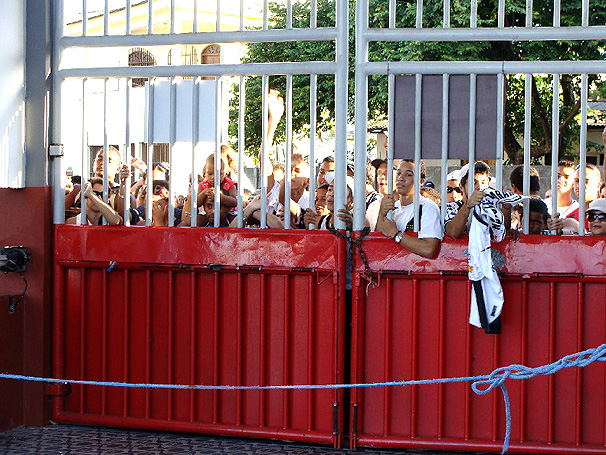 Para piorar a situação, alguns torcedores ainda tentaram derrubar o portão do Clube dos Estivadores. Os seguranças agiram com firmeza e tranquilidade para evitar um incidente maior. Após alguns minutos, o acesso foi liberado, com o coletivo em andamento. Ao entrar no local, eles não pouparam Mancini e pediram a volta de Dorival Júnior, atualmente no Santos.