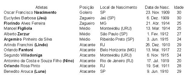 Vasco: Nascimento, Jaú e Florindo; Figliola, Zarzur e Argemiro; Lindo, Fantoni, Villadoniga, Nino e Orlando.