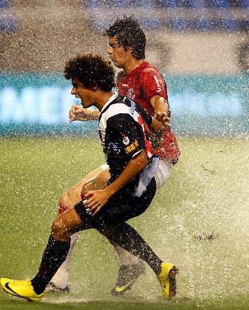 No minuto seguinte, Philippe Coutinho tocou para Dodô na entrada da área. O goleador tentou chutar, mas foi travado pela zaga. Na sobra, Coutinho arriscou de fora da área e Roberto salvou mais uma vez. Aos 37, Léo Gago cobrou falta da direita na cabeça de Carlos Alberto. O capitão tocou de leve e a bola passou por cima do gol do América.