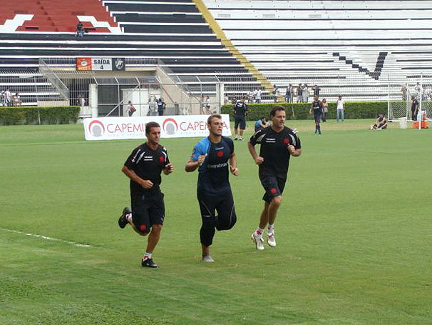NETVASCO - 26/01/2010 - TER - 16:23 - Vágner Mancini e Carlos Germano treinam junto com o goleiro CestaroO técnico Vagner Mancini correu ao lado do goleiro Cestaro e do preparador Carlos Germano durante a atividade desta terça-feira, em São Januário