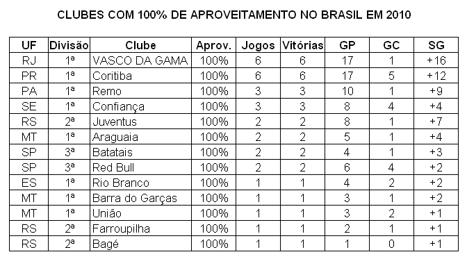 Neste início de 2010 o Vasco não tem a melhor campanha somente do Campeonato Carioca. O desempenho vascaíno na temporada é o mais destacado de todo o futebol brasileiro. Quem chega mais perto do Gigante da Colina é o Coritiba, que perde no saldo de gols.