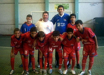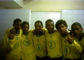 Philipe Coutinho começou a carreira no futsal do Madureira. Ele é o número 14, no meio da foto