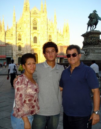 Para fechar, uma foto ao lado dos pais em frente ao famoso Duomo di Milano, na Itália