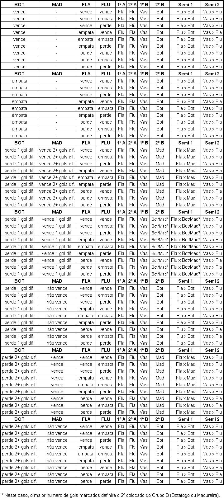 NETVASCO - 06/02/2010 - SÁB - 17:55 - Confira todas as possibilidades de confrontos nas semifinais da Taça GBVirtualmente garantido como 1º colocado do Grupo B por ter 14 gols de saldo a mais do que o Botafogo, o Vasco assiste "de camarote" a definição dos confrontos das semifinais da Taça Guanabara.