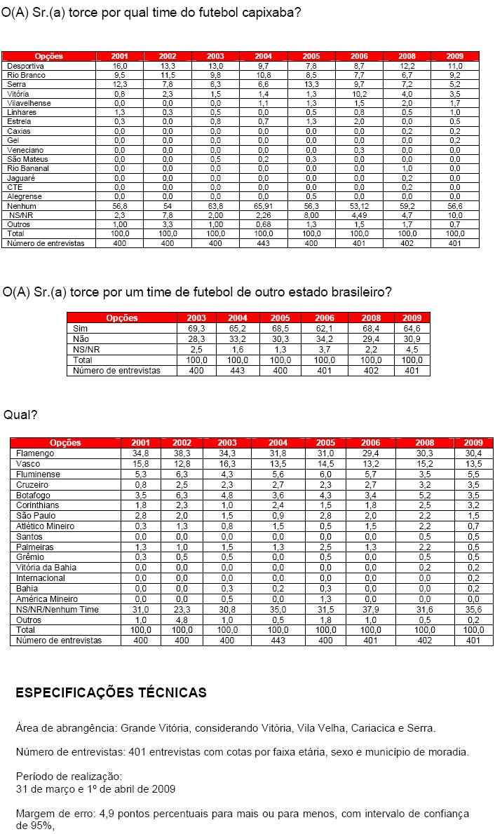Fonte: NETVASCO (texto), Instituto Futura (resultados e metodologia da pesquisa) índice | envie por e-mail | espalhe Anterior: 00:15 - Força Jovem vai lançar a 'TV Força' e procura repórteres Próxima: 06:26 - Vágner Mancini tem utilizado camisas listradas em várias partidas |