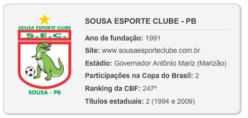 NETVASCO - 10/02/2010 - QUA - 14:43 - Presidente do Sousa diz que conta com torcida do Urubu contra o VascoFundado em 10 de julho de 1991, o Sousa Esporte Clube se prepara para participar de sua terceira edição da Copa do Brasil. Para tornar-se mais uma surpresa e ficar conhecido no cenário nacional, a equipe vai tentar desbancar o favoritismo do Vasco na primeira fase da competição. O Dinossauro Verde do Sertão, como é conhecido, recebe os cariocas às 21h50m desta quarta-feira, no Almeidão, em João Pessoa-PB.
