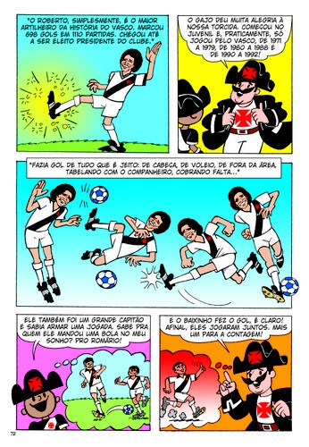 Acima, Roberto Dinamite na HQ sobre o Vasco
