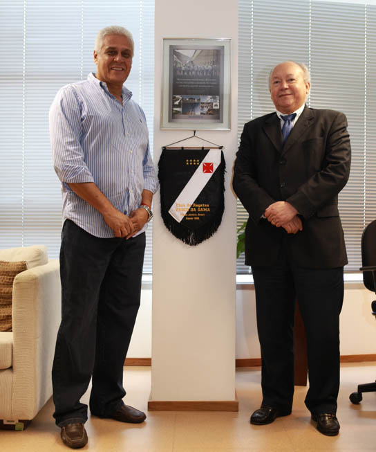 NETVASCO - 05/03/2010 - SEX - 19:01 - Dinamite visitou a sede da Eletrobrás nesta sexta-feiraO presidente do Vasco, Roberto Dinamite, fez uma visita nesta sexta-feira (06/03) à sede da Eletrobrás, patrocinadora do clube, no Centro do Rio de Janeiro. Na ocasião, Roberto Dinamite presenteou o presidente da estatal, José Antônio Muniz Lopes, com duas edições do livro "Vascão, o Gigante da Colina", de Ziraldo, e uma flâmula do Vasco.