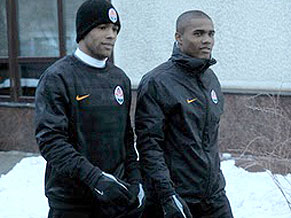 Alex Teixeira e Luiz Adriano durante a pré-temporada do Shakhtar Donetsk, da Ucrânia