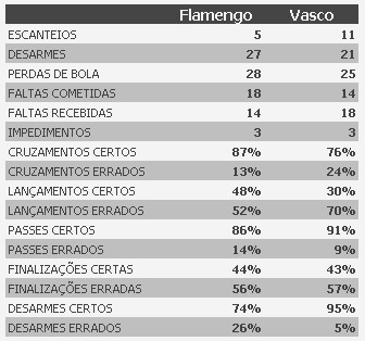 FLAMENGO: Bruno; Leonardo Moura, Álvaro, Fabrício e Juan; Toró, Willians, Kléberson(Rodrigo Alvin) e Vinícius Pacheco(Petkovic); Vágner Love( Ronaldo Angelim) e Adriano