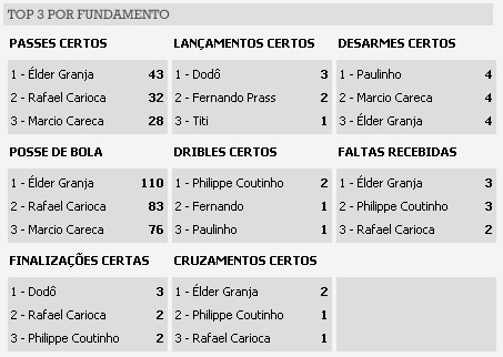VASCO: Fernando Prass; Gustavo (Rodrigo Pimpão), Fernando e Tite; Élder Granja, Paulinho (Léo Gago), Rafael Carioca, Philippe Coutinho e Márcio Careca; Rafael Coelho (Jéfferson) e Dodô