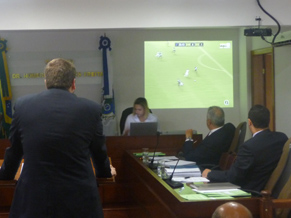 Durante o julgamento, o advogado do Vasco, Fernando Lamar, ressaltou que houve uma falta normal de jogo e que a denúncia foi bem tipificada pela Procuradoria. Desta maneira, pediu a absolvição do lateral, dizendo que o lance não foi nem merecedor para cartão amarelo.