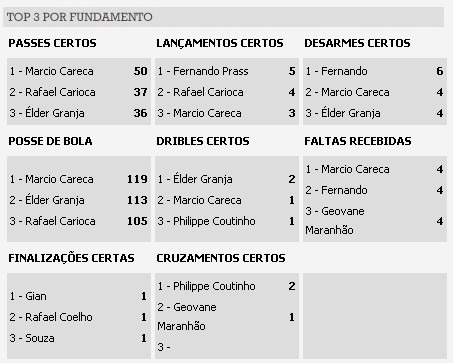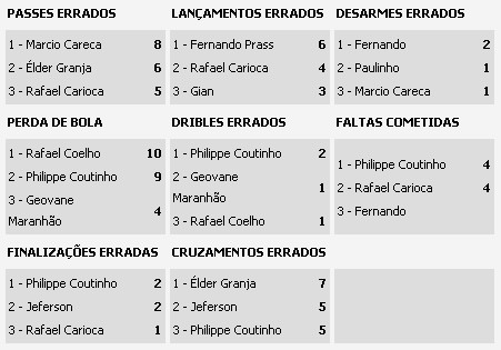 VASCO: Fernando Prass, Gustavo (Souza - 30/1ºT), Fernando e Gian; Granja, Paulinho (Geovane Maranhão - intervalo), Rafael Carioca, Jeferson (Dodô - 20'/2ºT) e Márcio Careca; Philippe Coutinho e Rafael Coelho. Técnico: Vágner Mancini.