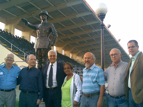 Seu Murilo é o 1º à esquerda, de azul, na reinauguração da estátua do Tiro de Guerra em agosto de 2008. Completam a foto Luso Soares (1º vice-geral), Roberto Dinamite (presidente), Dona Edméia (única benemérita mulher do Vasco), José Carlos e Germano (adminstração) e o vereador Roberto Monteiro