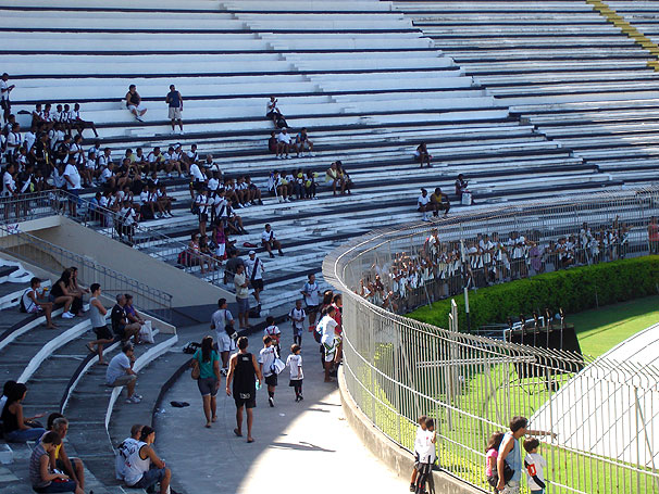 NETVASCO - 27/03/2010 - SÁB - 12:30 - Torcedores mirins animam o treino do Vasco na véspera do clássicoO treino do Vasco na manhã deste sábado, em São Januário, véspera do clássico contra o Fluminense, teve a presença de uma grande quantidade de torcedores, a maioria esmagadora de crianças que fazem parte de escolinhas do clube. Tamanha a animação da garotada, nem parecia que o time vive uma crise que resultou na demissão do técnico Vagner Mancini após a derrota para o Americano, na última rodada.