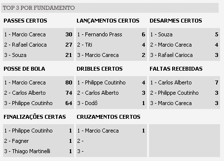 Vasco - Fernando Prass; Elder Granja (Fagner - 32'/2ºT), Thiago Martinelli, Titi e Márcio Careca; Nílton, Rafael Carioca, Souza e Jeferson (Carlos Alberto - 13'/1ºT); Philippe Coutinho e Elton (Dodô - 27'/2ºT). Técnico: Gaúcho