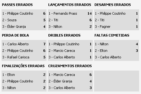 A entrada do camisa 19 fez bem ao time de São Januário. Na base dos contra-ataques, os cruzmaltinos levavam perigo e Philippe Coutinho aparecia como o toque diferencial no setor do ataque. Com um bom chute rasteiro, ele levou perigo a Rafael.