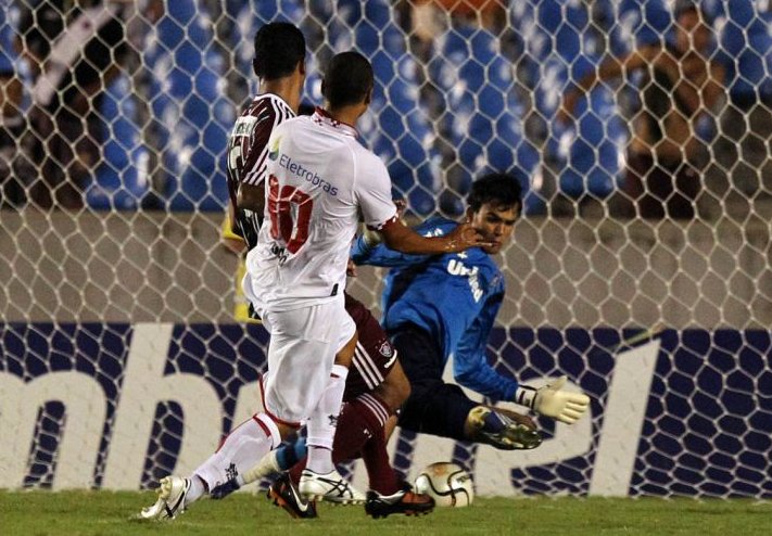 Insistindo pelo meio, o Fluminense tinha dificuldades e começou a errar muitos passes. Mariano aparecia constantemente livre pela direita, mas era ignorado pelos companheiros. Mas se Everton e Diguinho só queriam sabe de afunilar, eis que Conca tomou a frente e fez a bola rolar como deve. Dos 30 minutos até o fim do primeiro tempo, o Tricolor foi mais perigoso. Com seu time pressionado, Fernando Prass apareceu bem em duas oportunidades e evitou o gol.