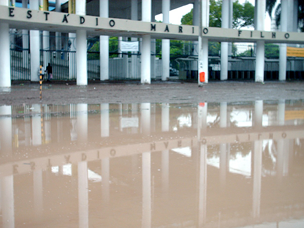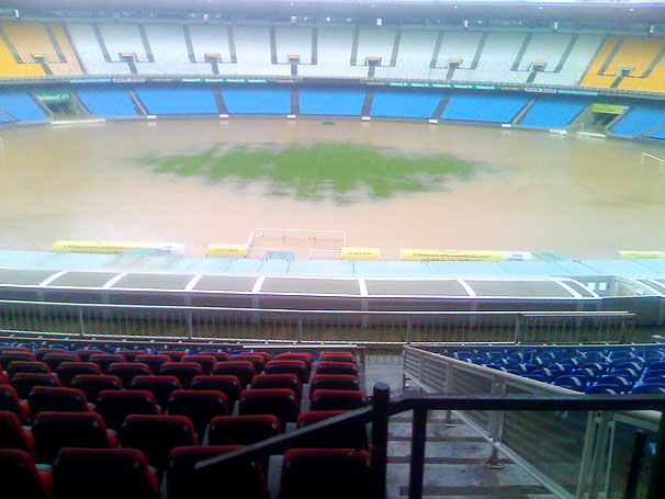 NETVASCO - 06/04/2010 - TER - 17:00 - Maracanã tem vestiários alagados e gramado fica coberto de sujeiraApós caos e muita chuva, quando a luz do dia surgiu, os estragos causados pelo temporal que atingiu o Rio de Janeiro na madrugada ficaram ainda mais visíveis. A Zona Norte da cidade, onde ficam o Maracanã e o Maracanãzinho, foi um dos pontos mais prejudicados pelo mau tempo. Nas bilheterias do estádio e nas ruas ao redor do complexo, o cenário era de lama e água por todos os lados.