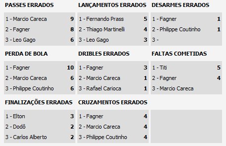Aos 40 minutos, Titi errou na saída de bola. Vagner Love recebeu na entrada da área, conseguiu driblar dois adversários ao mesmo tempo e deixou Léo Moura na cara de Fernando Prass. O lateral preferiu não chutar e tocar para o meio da área. Michael dominou e chutou por cima do gol perdendo uma chance de ouro. E o primeiro tempo terminava.