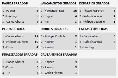 Aos 17, um lance inusitado. Phillipe Coutinho foi lançado em impedimento. Mas o auxiliar Jossemar Moutinho demorou a levantar a bandeira. Motivo: escorregou e levou um tombo na linha lateral.
