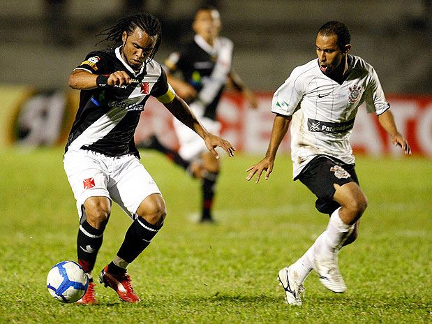 Quatro dias depois de reclamar muito do juiz no clássico diante do Flamengo, o Vasco foi novamente vítima de uma falha de arbitragem nesta quarta-feira. Mas apesar de ter um gol mal anulado, a equipe carioca obteve uma vitória importante na luta pelo título inédito da Copa do Brasil. Em Curitiba, o time cruzmaltino derrotou o Corinthians-PR por 1 a 0 e está em vantagem na luta por uma vaga nas quartas de final da competição. Graças a um gol de Léo Gago, em cobrança de falta, o time carioca joga pelo empate no jogo de volta, próxima quarta-feira, às 16h (de Brasília), em São Januário.