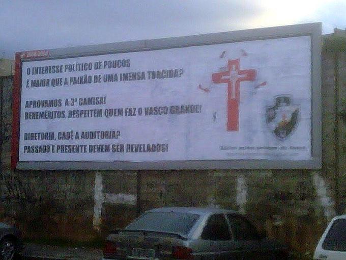 O outdoor abaixo pode ser visto nas imediações do estádio de São Januário. Ele é assinado por um grupo que se intitula "Sócios Unidos pelo Vasco", cujo site é http://www.sociosunidospelovasco.blogspot.com.