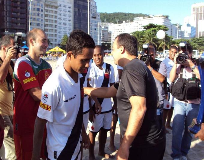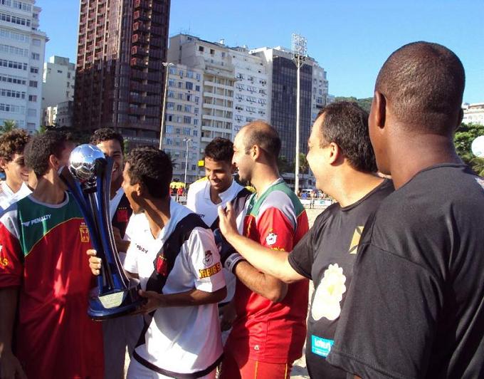 NETVASCO - 21/12/2009 - SEG - 20:00 - Futebol de Praia: Vasco é campeão da 1ª Copa Society Sub-23Neste domingo, no mesmo campo onde foram disputadas as finais do campeonato carioca de futebol de praia, campo em frente ao Copacabana Palace Hotel, tivemos a decisão da 1ª COPA SOCIETY DE FUTEBOL DE PRAIA SUB-23 (6 na linha) 2009, com a disputa de uma das semifinais pela manhã e a final à tarde, como preliminar do 1º DESAFIO VASCO X FLAMENGO DE FUTEBOL DE AREIA (SOCIETY) 2009. Na semifinal disputada a partir das 9h da manhã, entre COPACABANA e EMBALO, tivemos empate em 1×1 no tempo normal e o adversário do VASCO DA GAMA, na grande final, só foi decidido na disputas de penaltys, onde o COPACABANA venceu por 2×1. À tarde, com um grande público presente, a partir das 17h, tivemos a partida final entre VASCO DA GAMA e COPACABANA, com a vitória do primeiro, num duelo de belas jogadas e belos gols, por 4×1, com destaque para o artilheiro do campeonato, com 7 gols, FRED, autor de 2 gols na final para a equipe vascaína. O troféu foi entregue aos jogadores pelo grande torcedor vascaíno, GOVERNADOR SÉRGIO CABRAL, que participou do jogo principal, logo após a decisão! Esta vitória é um prêmio para o trabalho que se iniciou este ano, com a montagem da equipe VASCO DA GAMA de futebol de areia, com total apoio do CLUB DE REGATAS VASCO DA GAMA, na pessoa do meu grande ídolo, PRESIDENTE ROBERTO DINAMITE, com treinos 3x na semana, seleção de vários bons jogadores e formação de um grupo vencedor. Este é o 3º campeonato em um período um pouco maior que 6 meses que conquistamos para o CLUB DE REGATAS VASCO DA GAMA. Todos os jogadores, assim como todos aqueles que me ajudam no projeto, Gilberto e Bueno, estamos de parabéns e vamos continuar este excelente trabalho para o ano de 2010, disputando mais torneios e conquistando mais troféus para o grande Vasco! Muito obrigado a todas as equipes que participaram deste campeonato, muito obrigado ao meu amigo Ricardo Sêroa, que me ajudou na organização, aos árbitros sob a coordenação do Igor e a todo mundo que prestigiou este grande campeonato! Ano que vem tem mais, com certeza!