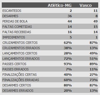 Cartões Amarelos: Fabiano, Ricardinho, Leandro e Carlos Alberto (Atlético-MG), Paulinho (Vasco)