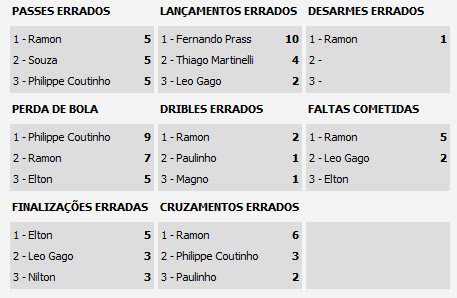 VASCO: Fernando Prass, Paulinho, Thiago Martinelli, Dedé e Ramon; Nilton, Souza, Magno (Léo Gago) e Phillipe Coutinho; Dodô (Caíque) e Élton. Técnico: Gaúcho.