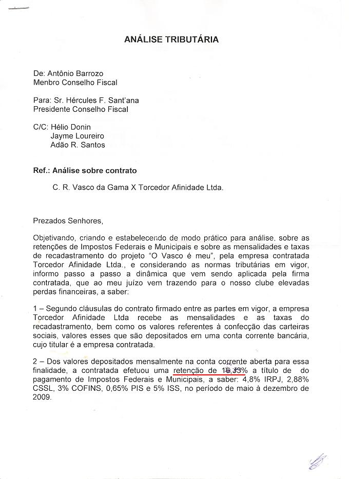 Nota e documento publicados pelo site do Casaca, principal grupo de Oposição da política vascaína: