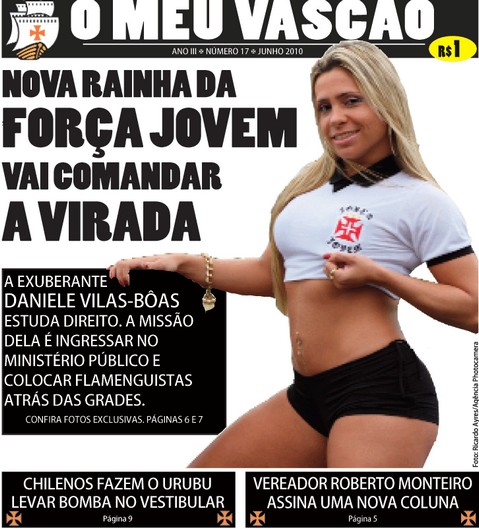NETVASCO - 27/05/2010 - QUI - 09:30 - Nova rainha da FJV é destaque da edição nº 17 do jornal 'O Meu Vascão'A edição número 17 (junho/2010) do jornal "O Meu Vascão" já pode ser encontrada nas bancas do Estado do Rio de Janeiro. O destaque é a nova rainha da Força Jovem, Daniele Vilas-Bôas.