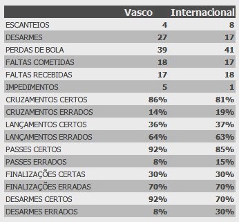 Gaúchos e cariocas voltam a jogar no próximo domingo. O Inter recebe o Atlético-PR, no Beira-Rio, às 16h. Às 18h30m, o Vasco visita o Botafogo, no Engenhão.