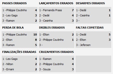 Sem articulação, a melhor saída para ambos era chutar de longe. Walter bombardeou Fernando Prass, e o goleiro fez grande defesa. Elton, que foi confirmado minutos antes de a bola rolar, superou as dores no tornozelo direito para tentar ajudar o time. Numa bomba de longe, quase surpreendeu Pato Abbondanzieri, aos 27. O argentino defendeu em dois tempos.