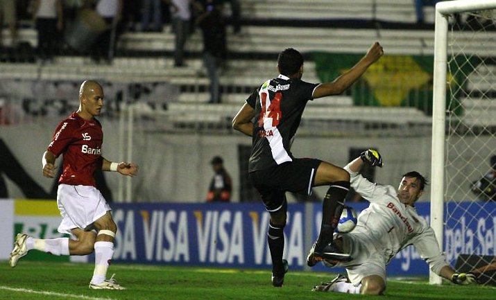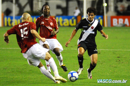 Ao mesmo tempo em que cresceu ofensivamente, o Vasco se viu mais vulnerável. O Inter se concentrou nos contra-ataques. Num deles, quase ampliou. Eram quatro colorados contra três vascaínos. Alecsandro recebeu pela esquerda da área, livre de marcação, mas o chute foi bem bloqueado pelo estreante Cesinha.