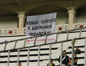 Nas arquibancadas, as faixas tinham como principal alvo a diretoria. Em uma delas, podia-se ler: “situação e oposição: enquanto vocês brigam, o Vasco sofre”. Em outra, o recado era ainda mais direto: “somos sócios e queremos mudanças”.