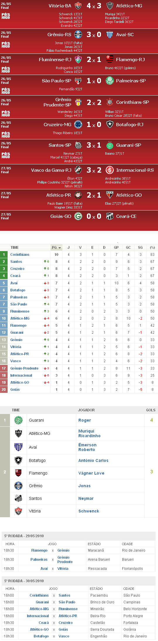 Fonte: NETVASCO (texto), Futebol Interior (resultados, autores dos gols), UOL (classificação, artilharia, próximos jogos) índice | envie por e-mail | espalhe Anterior: 00:05 - Nilton: 'Estamos superando adversidades' Próxima: 00:33 - Roth comemora vitória, mas diz que Vasco tem muito o que melhorar |