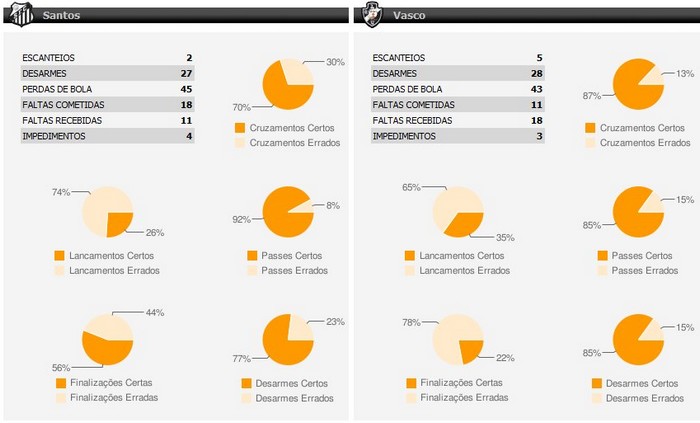 O Santos não tinha Robinho, na seleção, não tinha Neymar, suspenso, e contava com um Ganso nada inspirado. Ainda assim, não foi necessário muito para sair na frente do Vasco em um primeiro tempo onde forçou apenas seis minutos para abrir o placar. O time carioca, por sua vez, muito dependente de Philippe, até se esforçava, mas esbarrava na própria incompetência.