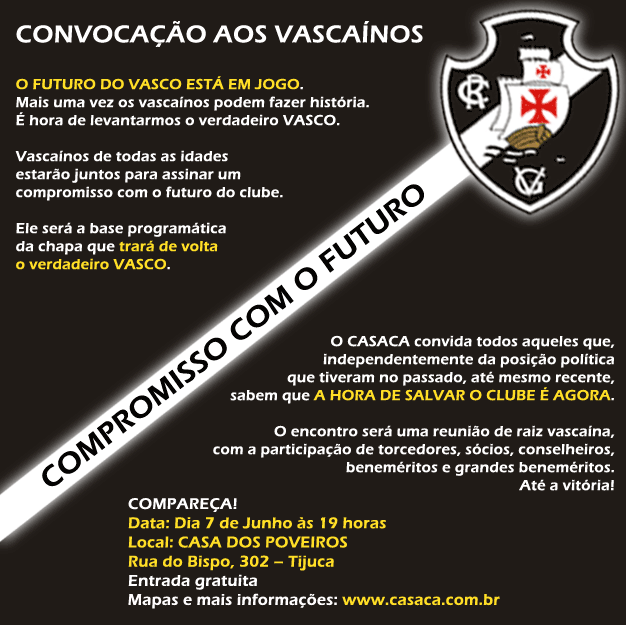 Nesta segunda-feira, dia 7 de junho, o programa será transmitido diretamente da Casa dos Poveiros, onde ocorrerá uma reunião da Oposição vascaína. Confira, na imagem abaixo, mais detalhes sobre o evento.