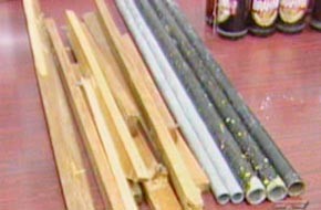Oito garrafas de coquetel molotov, cinco barras de ferro, pedaços de pau e três caixas com pedras. Tudo estava nas ruas próximas à Vila Belmiro.