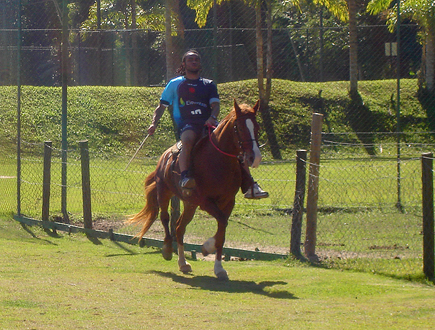 Outro que se aventurou no cavalo foi o meia Jeferson, que mostrou categoria para conduzir o animal, já que é proprietário de fazenda.
