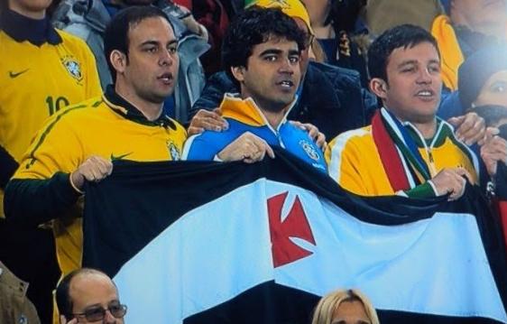NETVASCO - 20/06/2010 - DOM - 18:29 - Bandeira do Vasco é novamente mostrada antes de jogo do BrasilA exemplo do que já acontecera no jogo Brasil x Coreia do Norte, mais uma vez a TV que gera as imagens da Copa do Mundo exibiu torcedores segurando a bandeira do Vasco durante a execução do hino nacional neste domingo (20/06) antes da partida Brasil x Costa do Marfim, no estádio Soccer City, em Johanesburgo, na África do Sul.