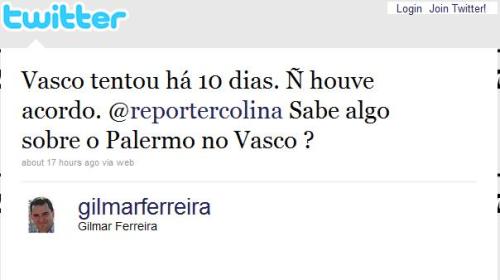 "Vasco tentou há 10 dias. Ñ houve acordo" postou o jornalista em seu twitter.
